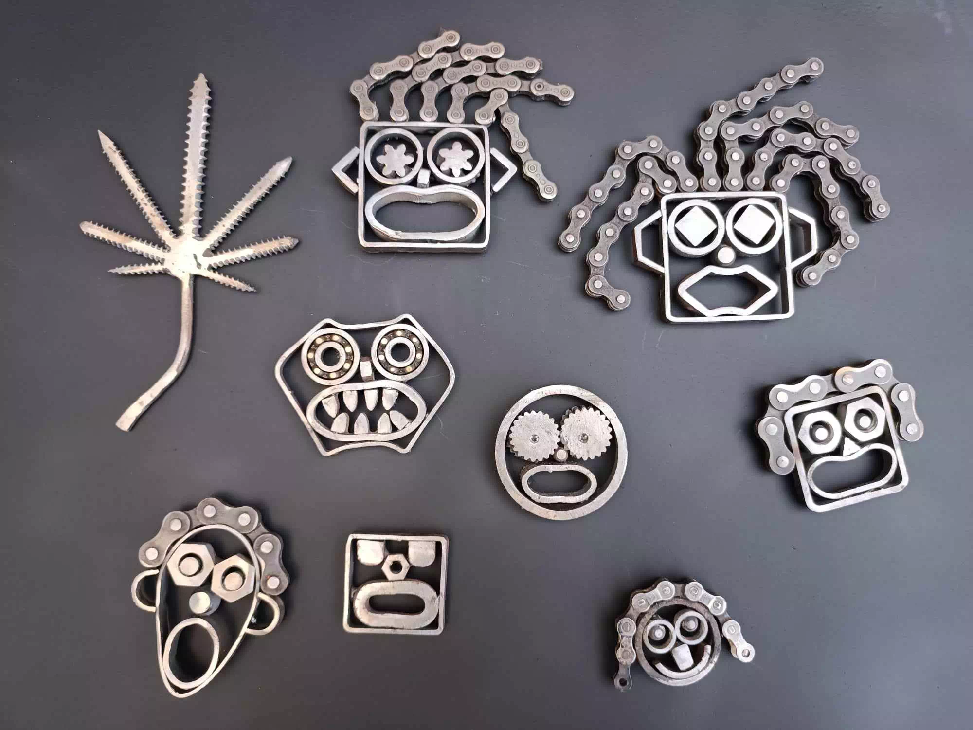 Je vous propose une série de smileys fabriqués de toutes pièces avec ce que j'avais sous la main et en utilisant bien évidemment, mon imagination. Ils se déclinent aussi bien en magnets décoratifs, qu’en porte-clés, boutons de portes, etc.