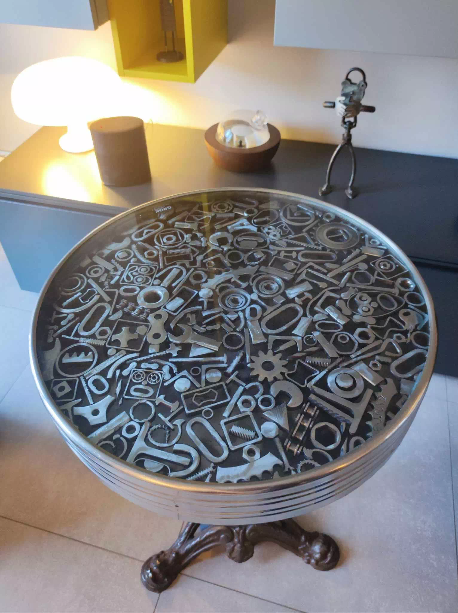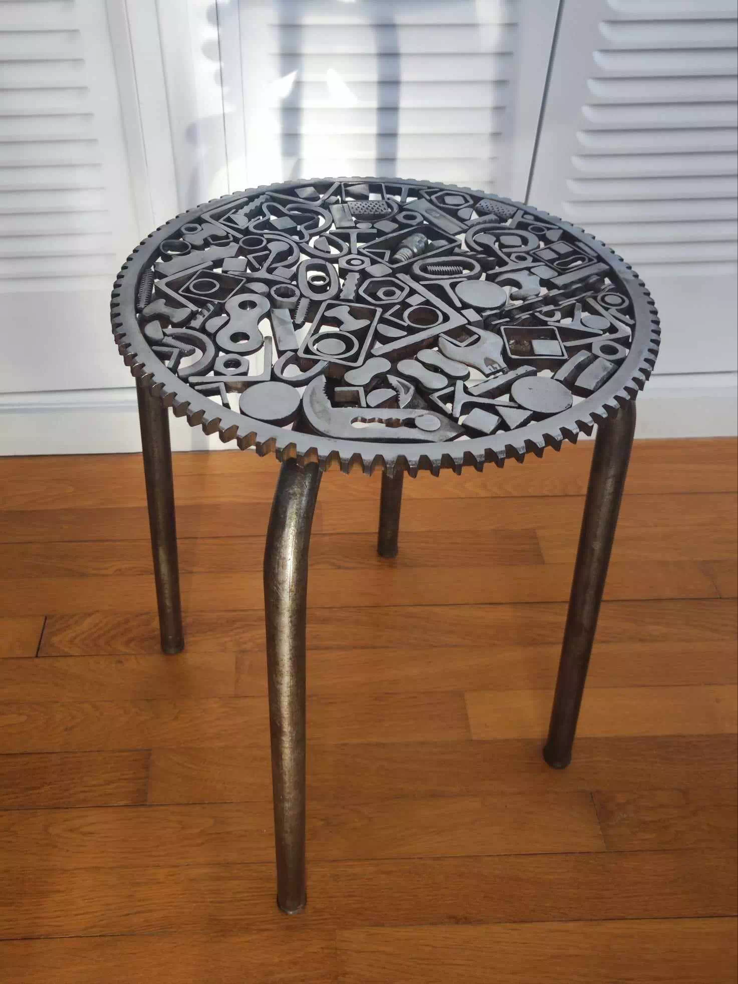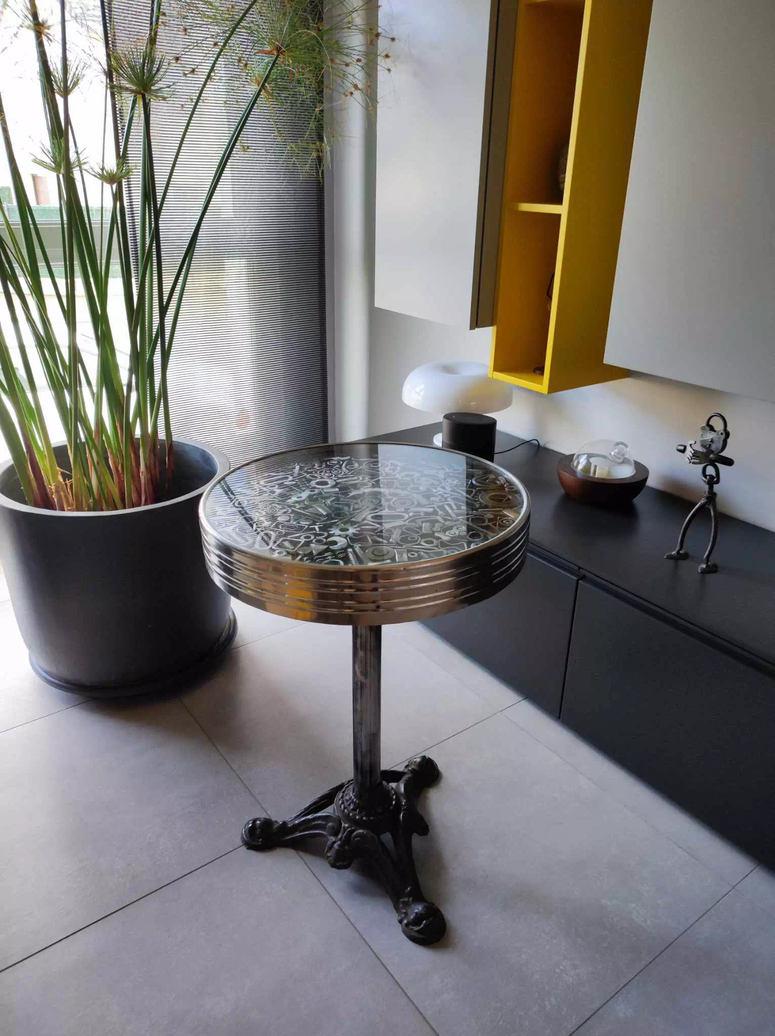 J’ai restauré d’anciennes tables de bistrot en leur apportant une touche artistique, grâce à un plateau de ma composition.