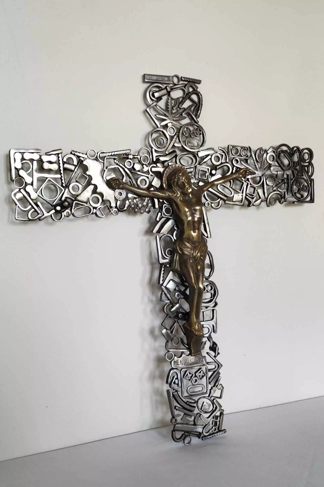 Fabrication d'une croix en métal afin d'y accrocher une statuette du Christ en laiton.