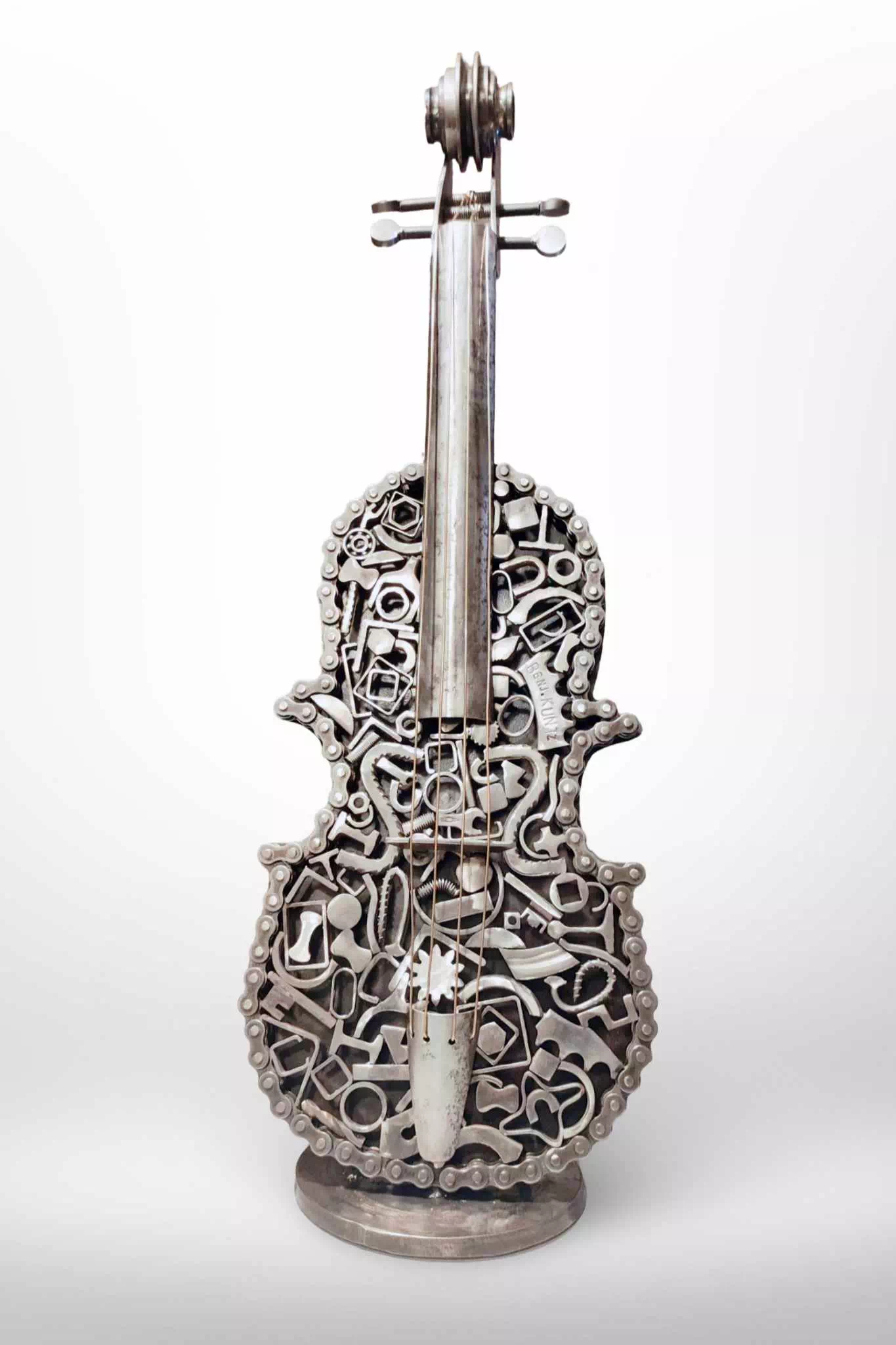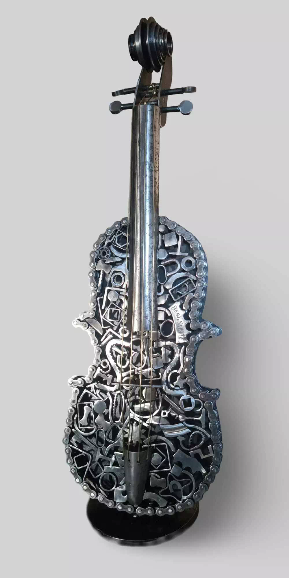 Un client amateur de musique, m'a donné carte blanche pour créer ce violon raffiné, posé sur son socle de présentation.